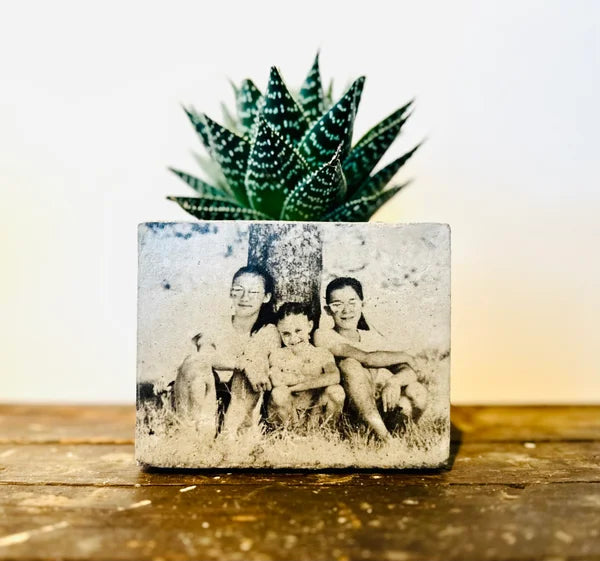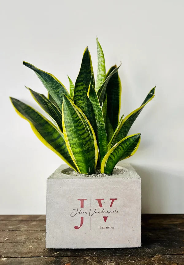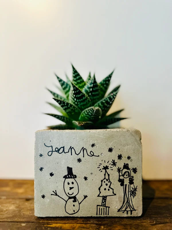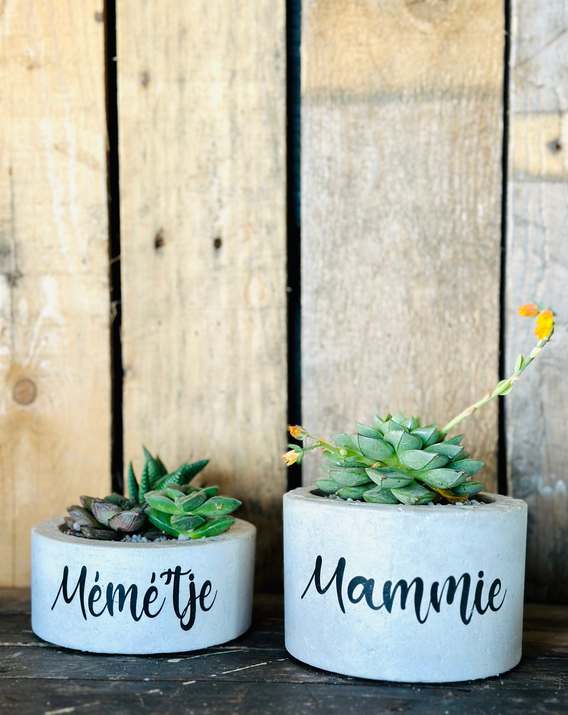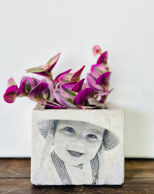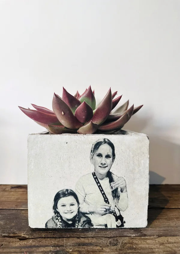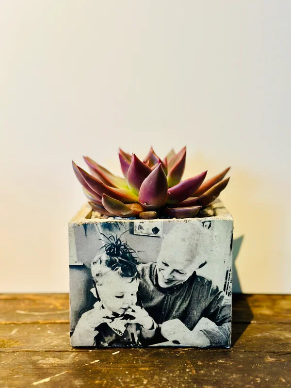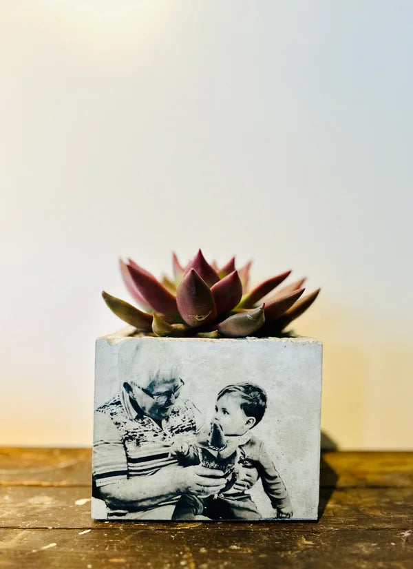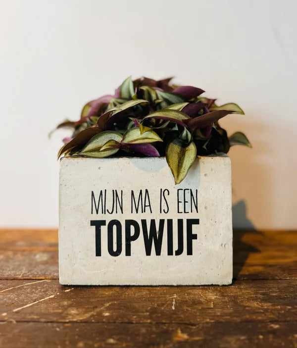 Beton bloempot met afbeelding/tekst naar keuze.