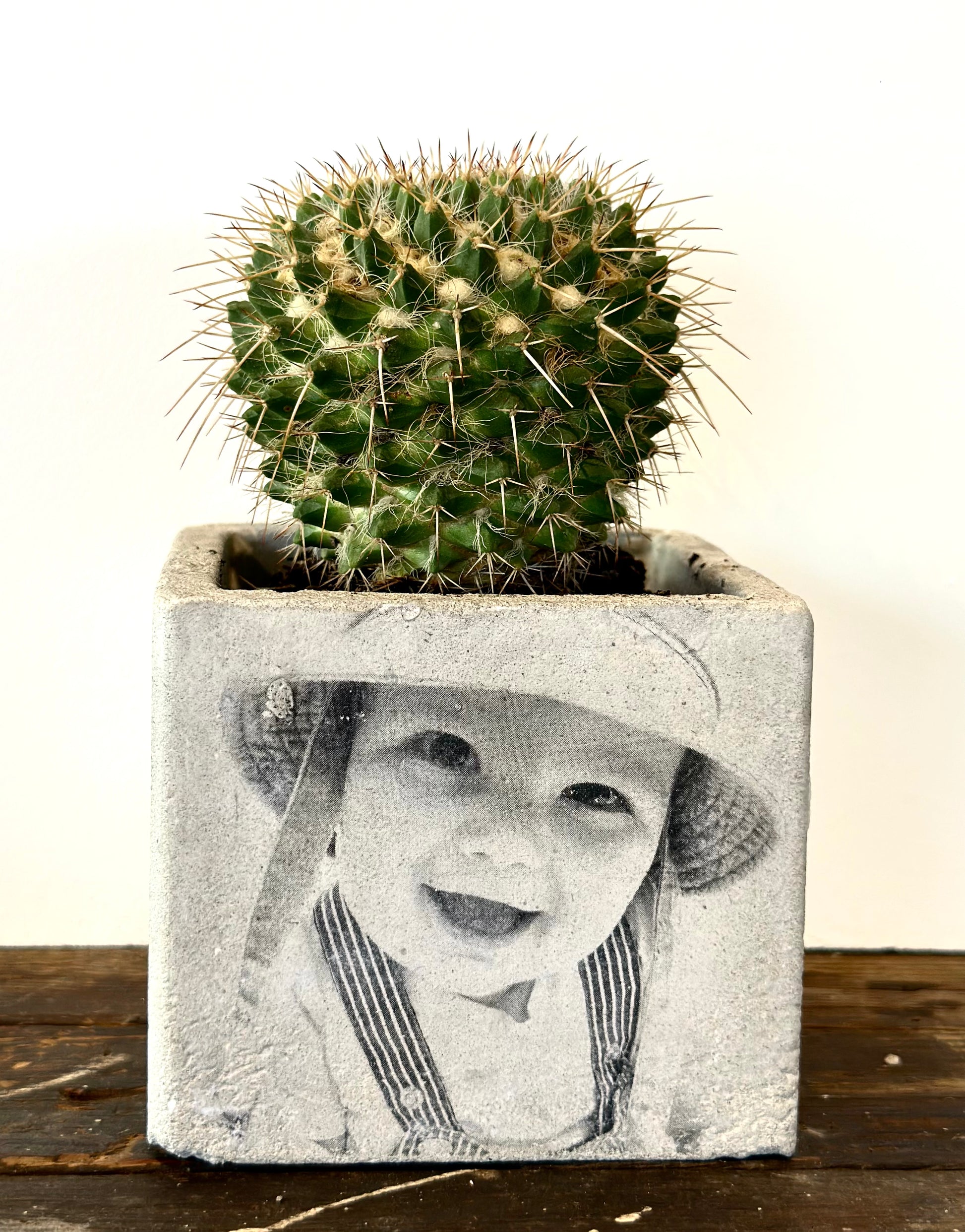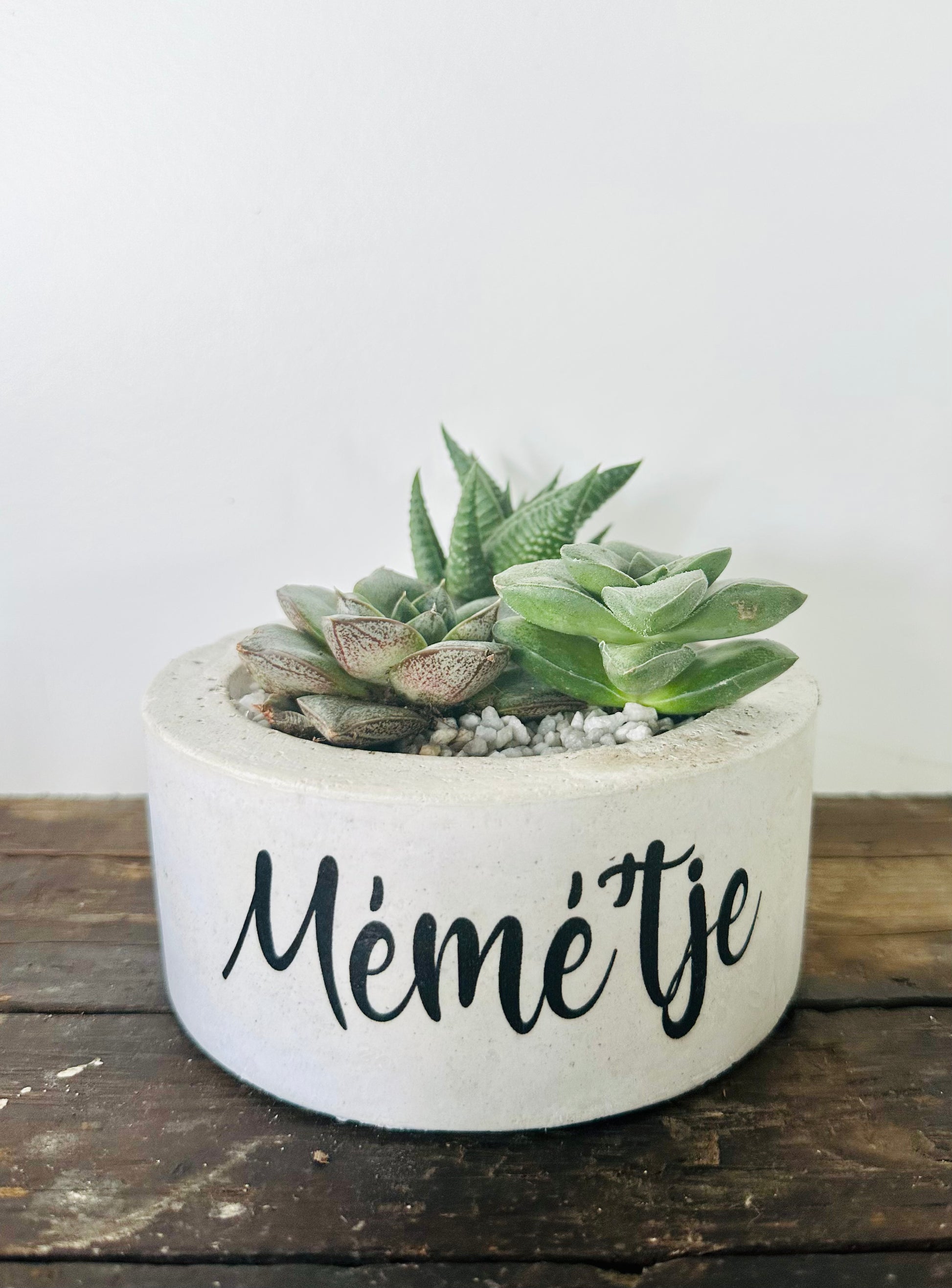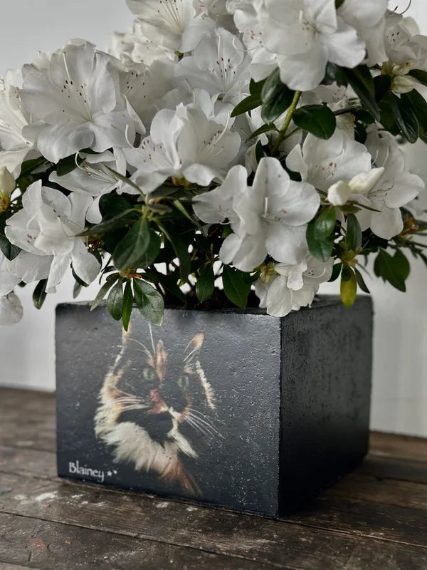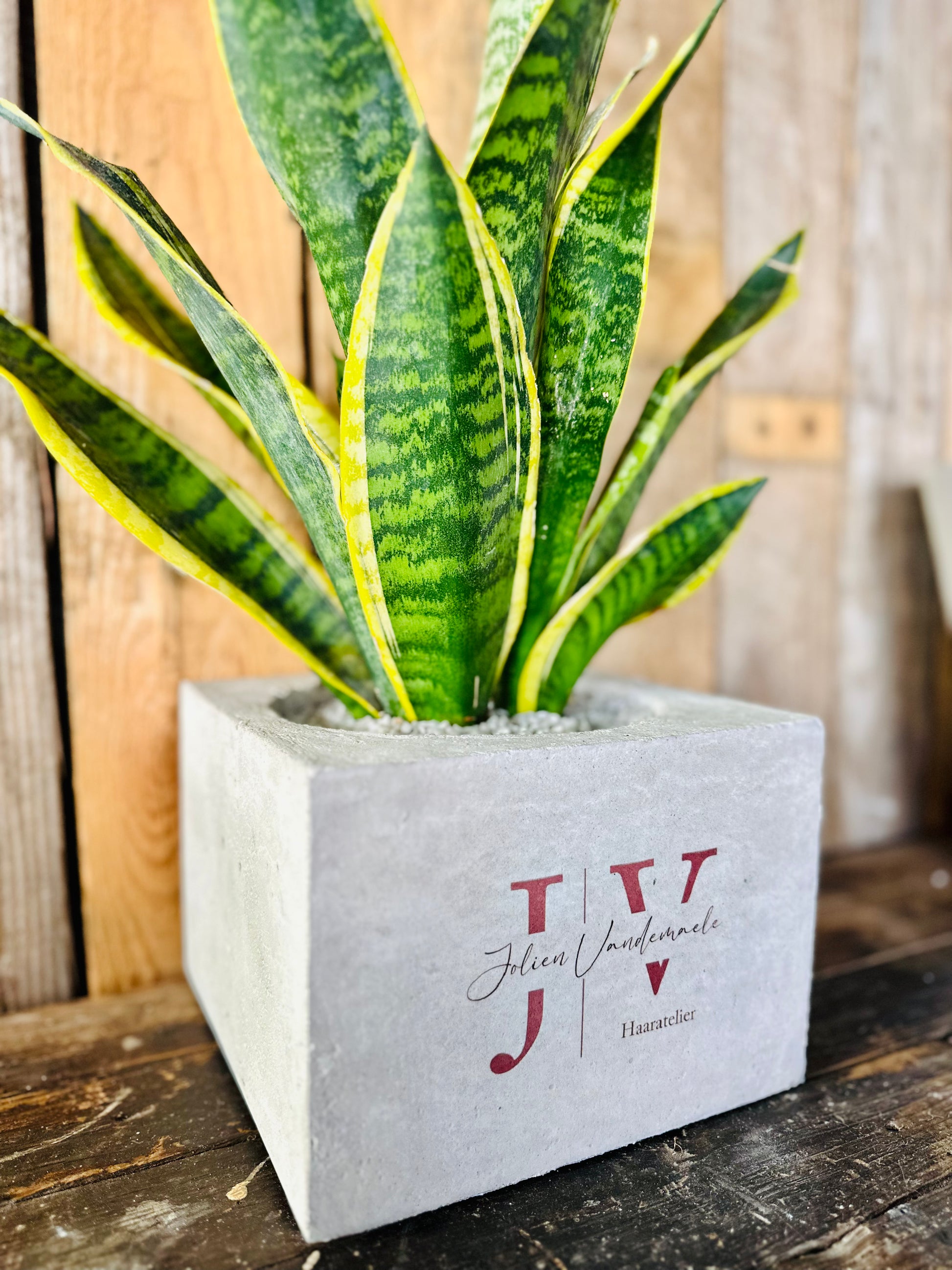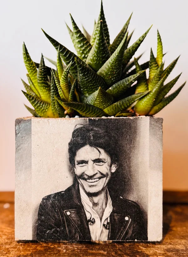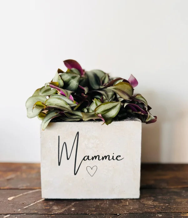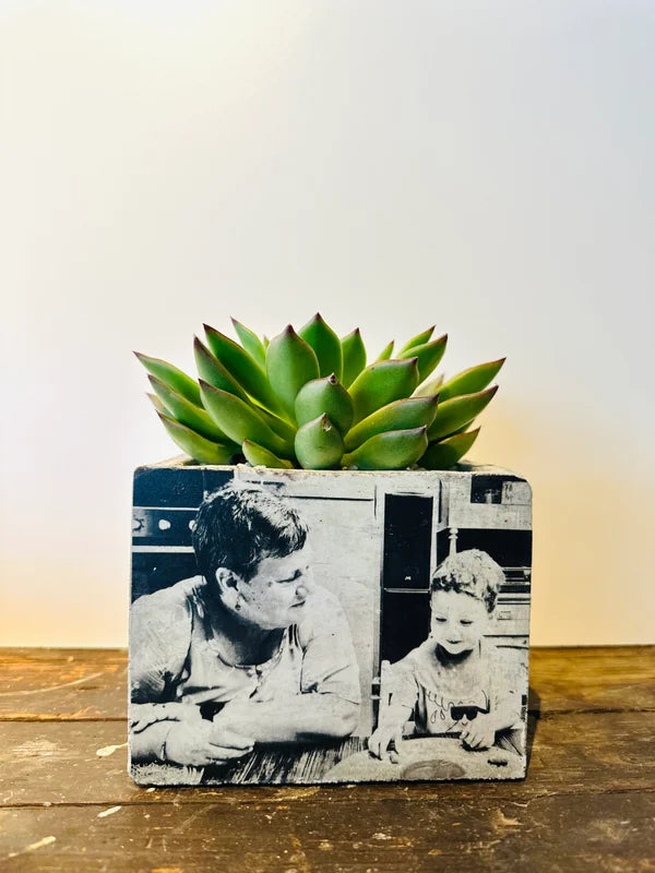 Beton bloempot met afbeelding/tekst naar keuze.