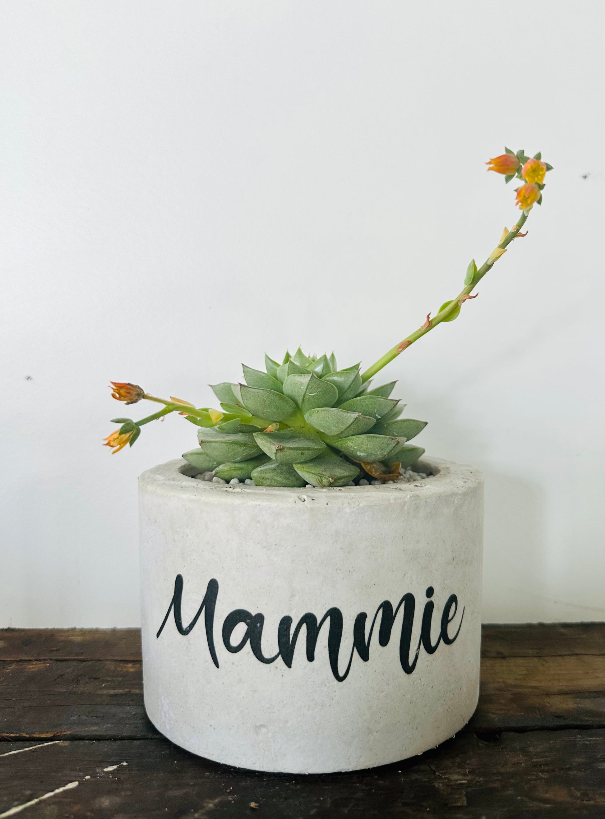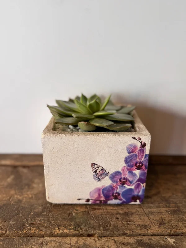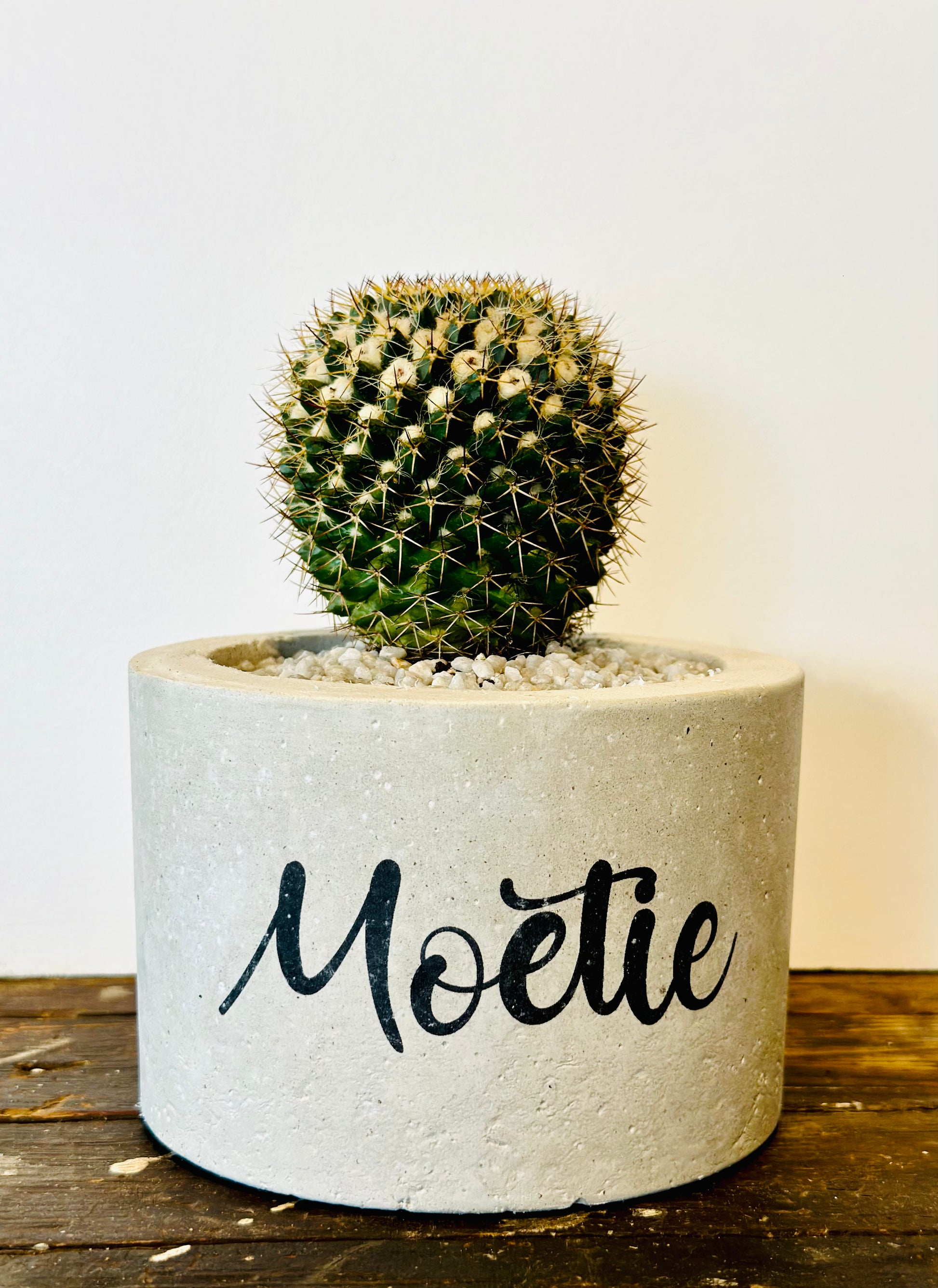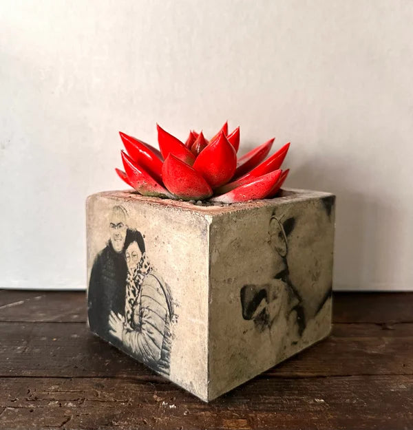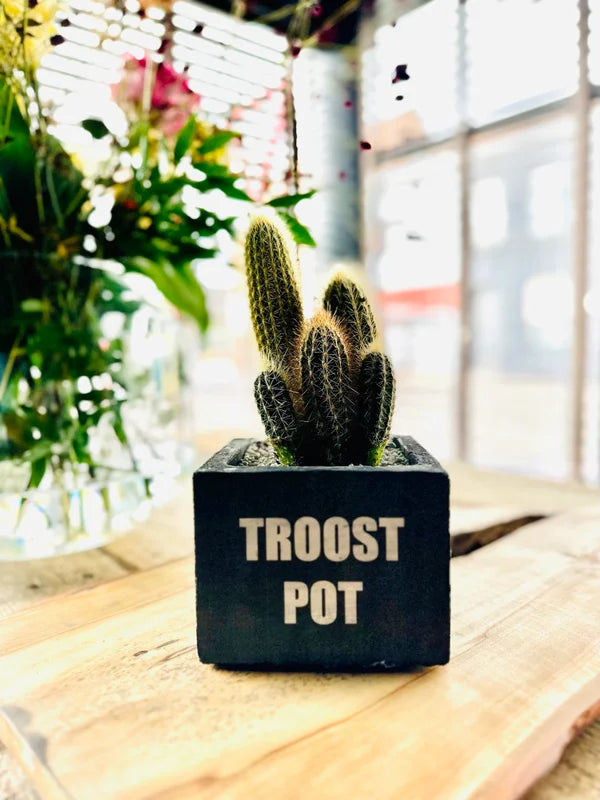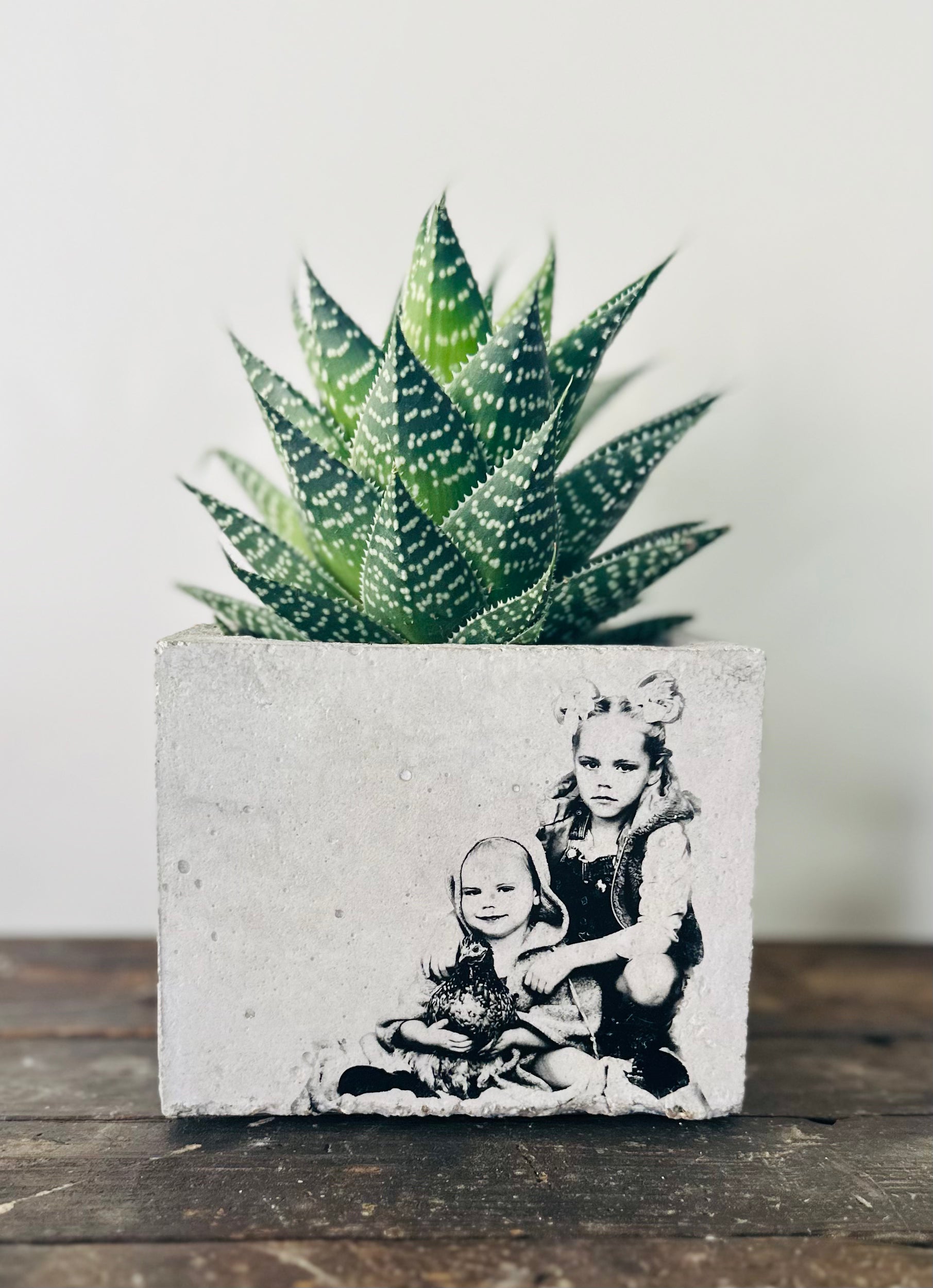 Beton bloempot met afbeelding/tekst naar keuze.