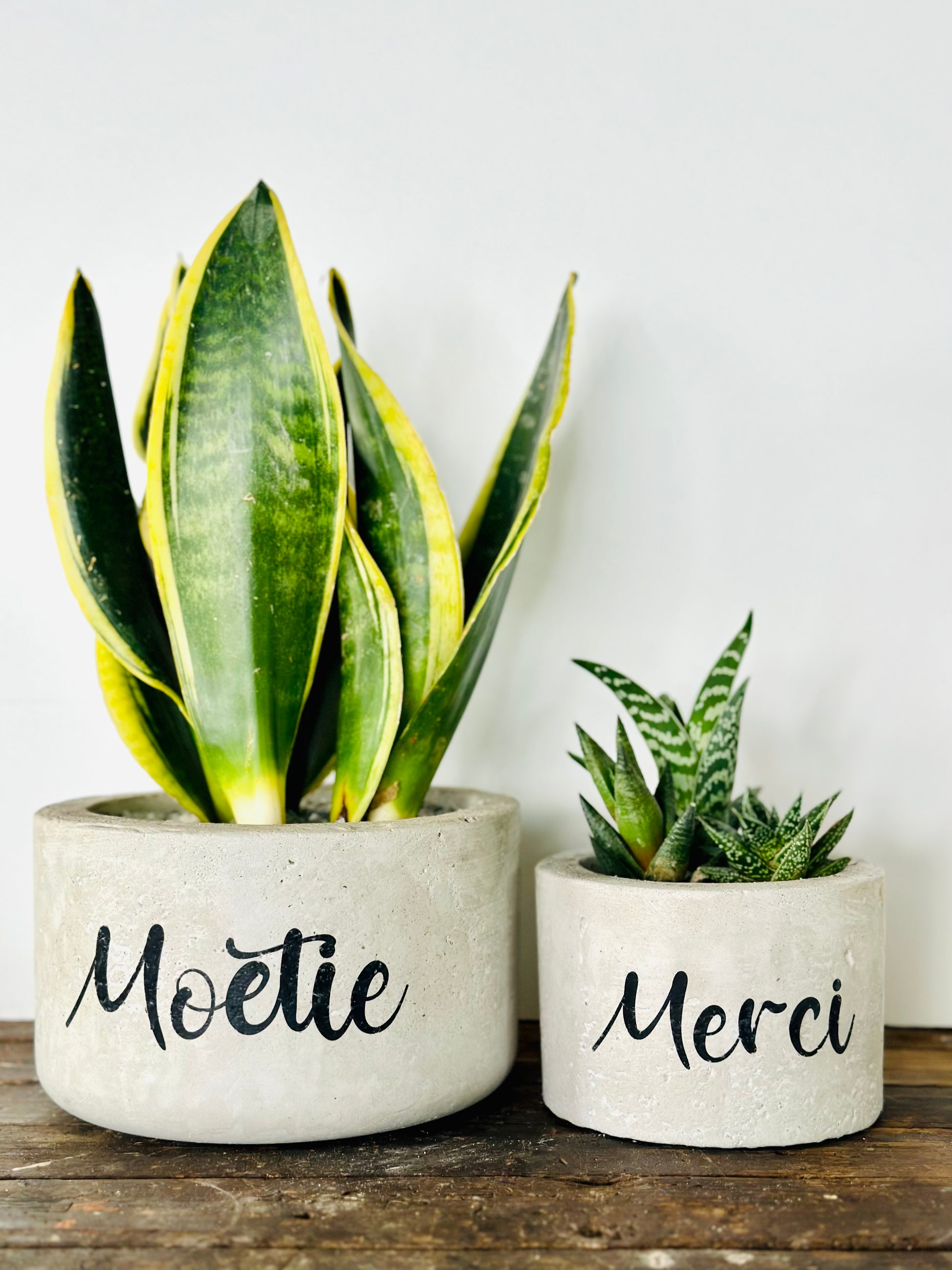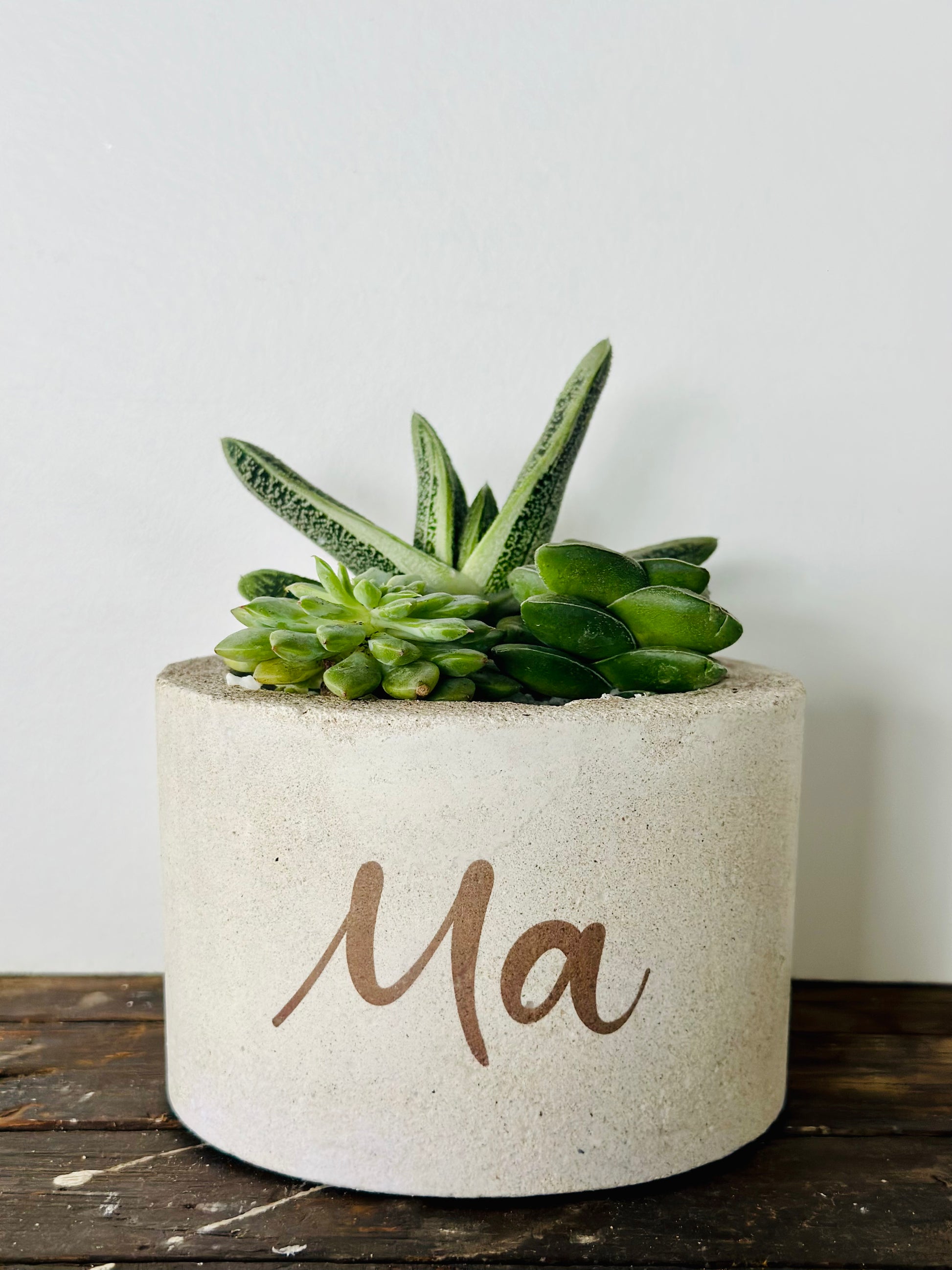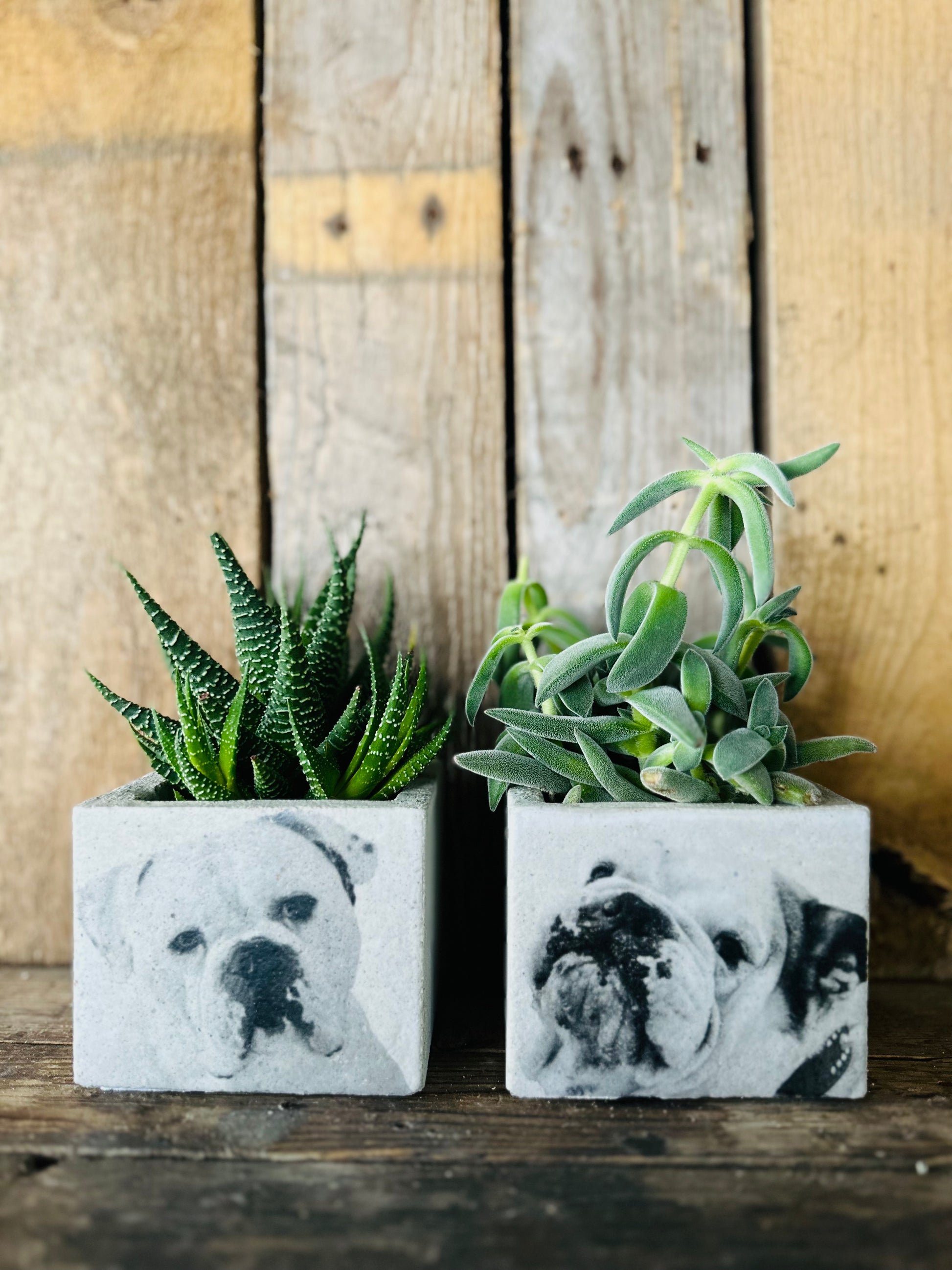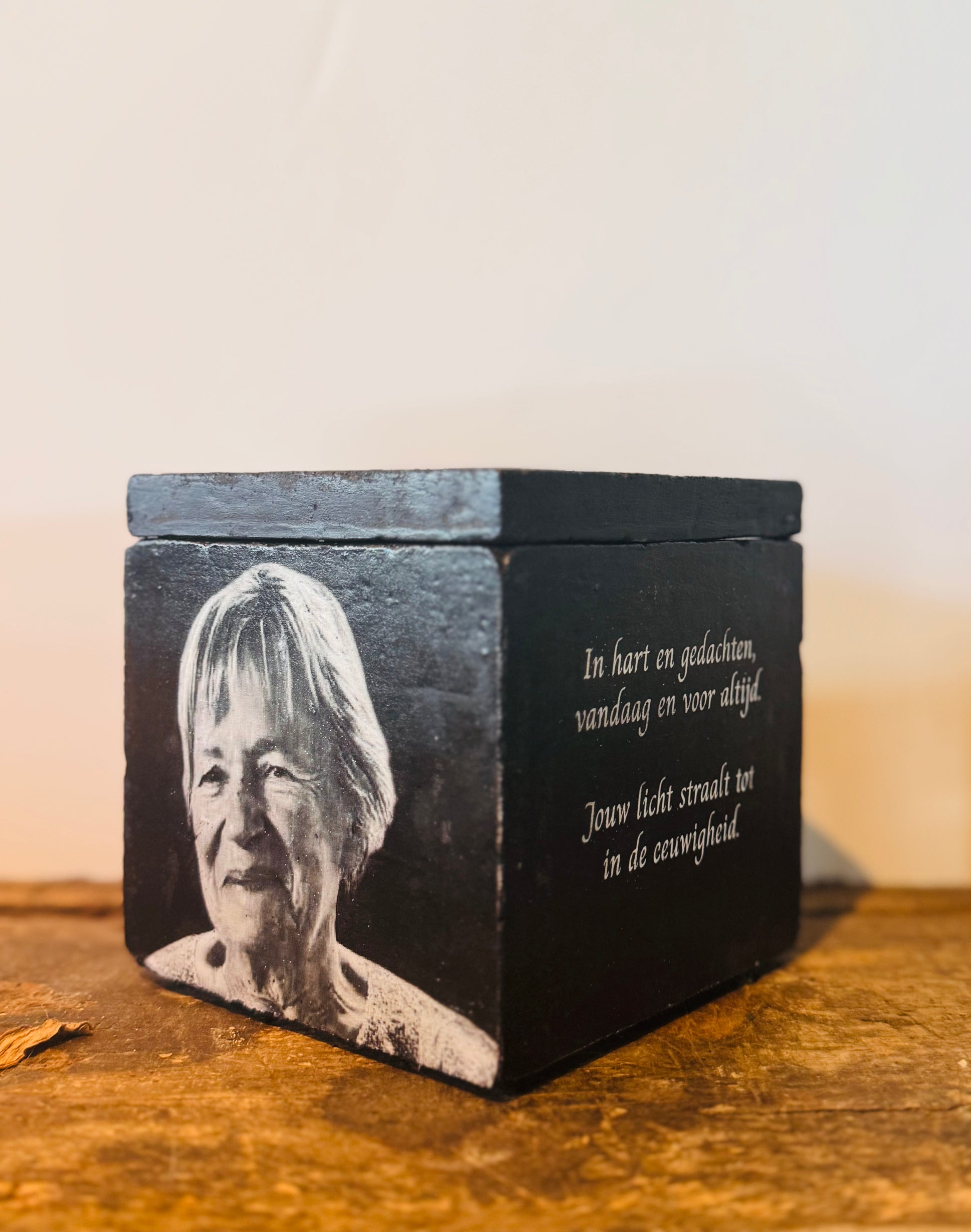 Beton bloempot met afbeelding/tekst naar keuze.